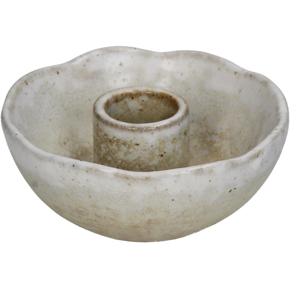 Candle Stick Stoneware Ivory 8.8x8.8x3.7cm