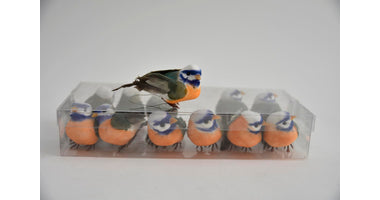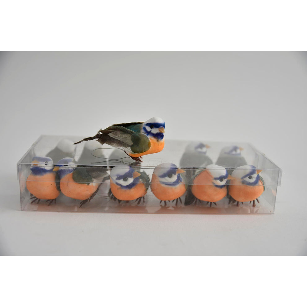 cb. 12 Vögel orange/blau 9cm