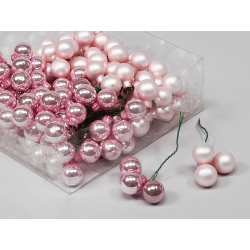 cb. 144 Glaskugeln/Drahtpulver rosa Kombi 20mm