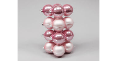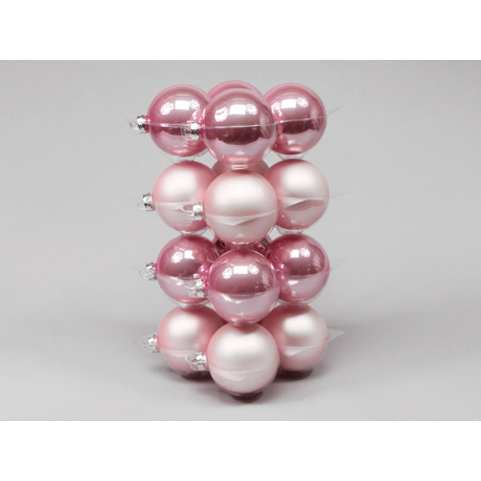 cb. 16 glasballen/kappe pulver rosa combi 80mm