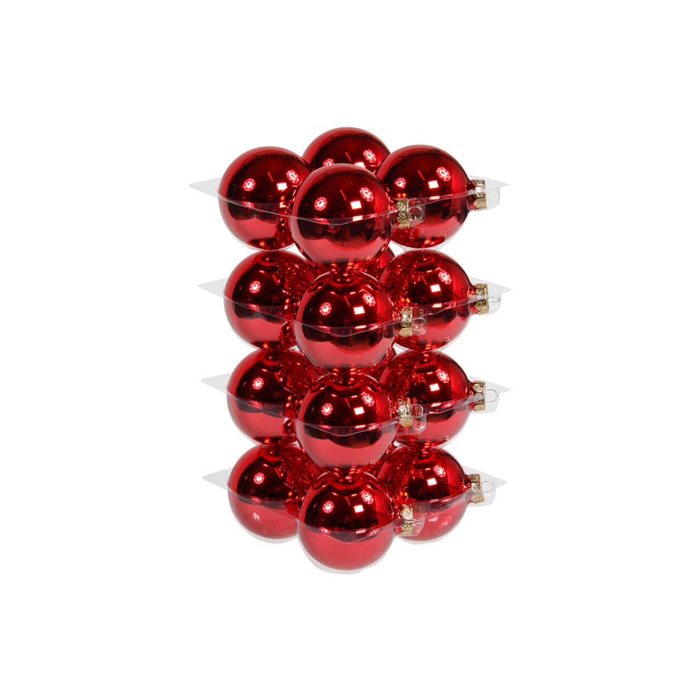 cb. 16 Glaskugeln/Kappe rot glänzend 80mm