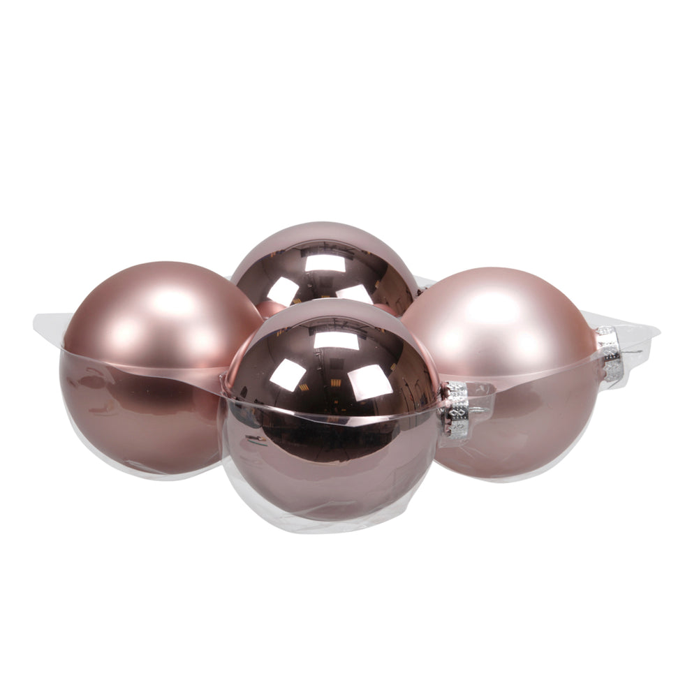 cb. 4 Glaskugeln/Kappe rauchig rosa 100 mm