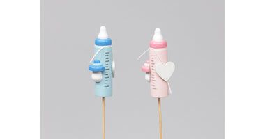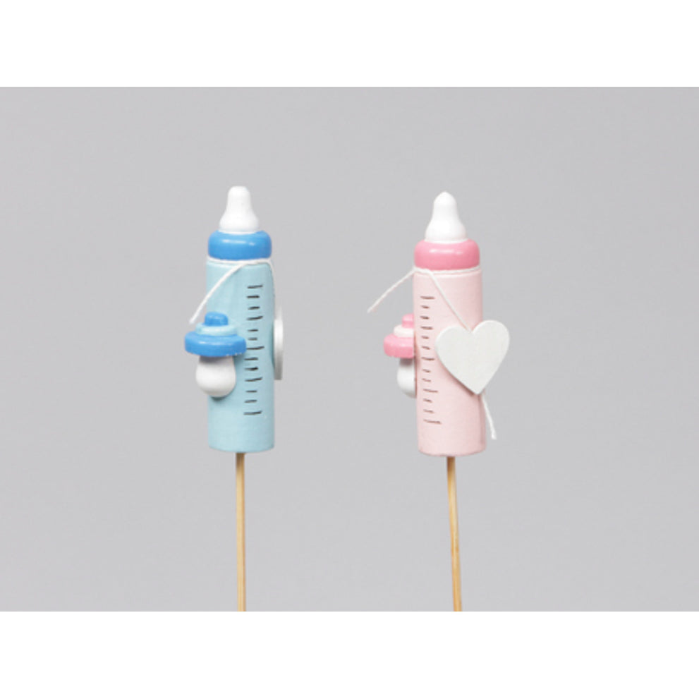 8 Holz-Babyflaschen/Stick pink/blau 6 cm