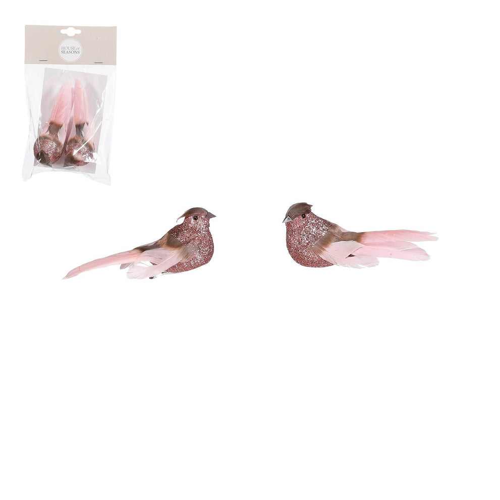 Vogel-Clips rosa, 2 Stück - L12 x B4 x H4,5 cm