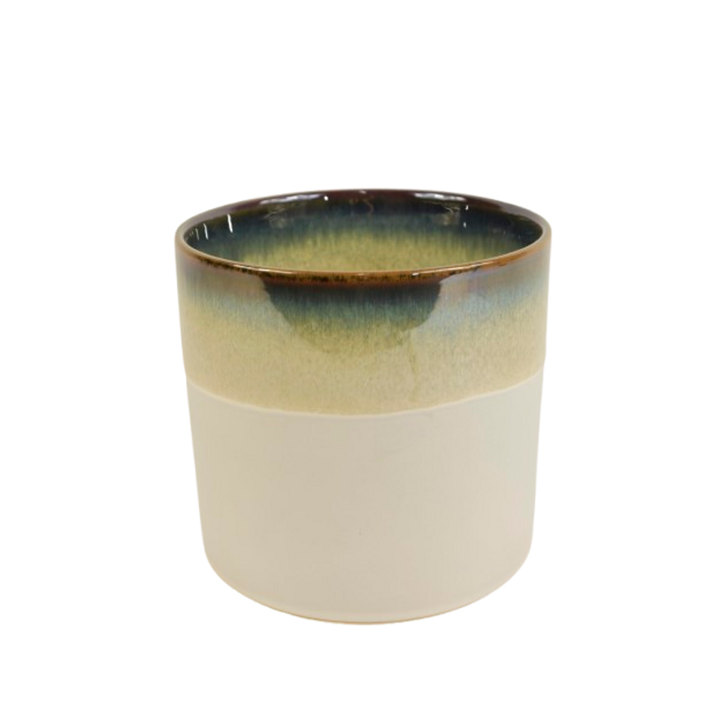 KERAMIK-ZYLINDER-TOPF D16X15H CREME/BRAUN