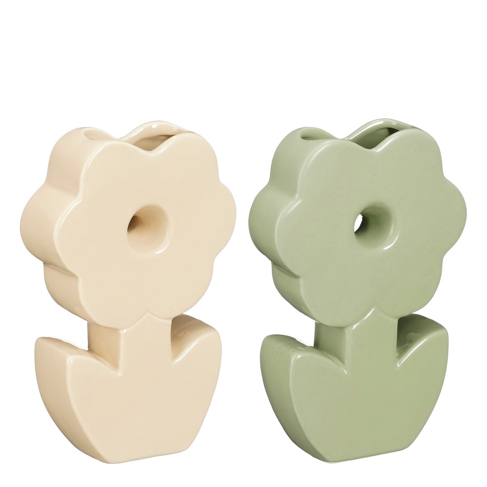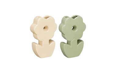 Dekorative Blume, hellgrün/hellgelb, 2er Set - L13,5 x B4,5 x H21 cm
