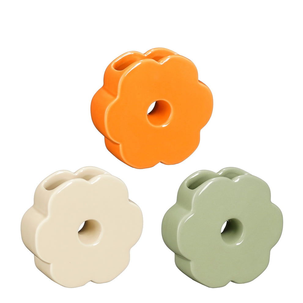Dekoration Blume orange hellgrün hellgelb 3er-Set - L10,5xB3,5xH10cm