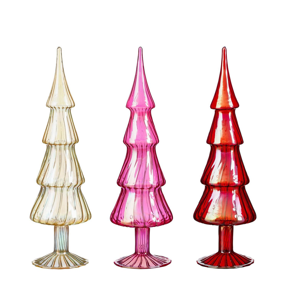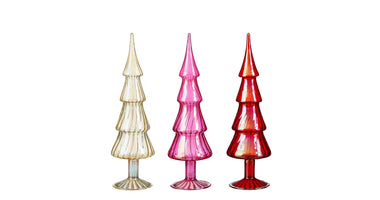 Dekobaum aus Glas, rot, rosa, gold, 3er-Set - H35 x D9 cm