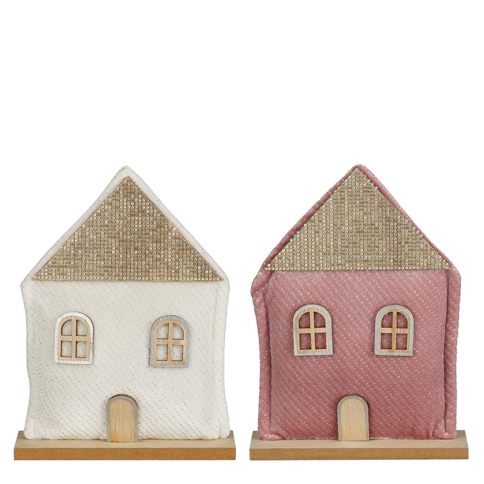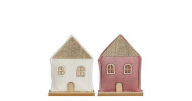 Hausdekoration weiß-rosa, 2er Set - L16 x B5 x H20,5 cm
