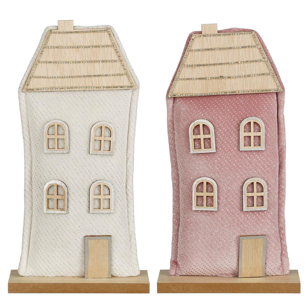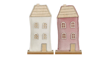 Hausdekoration weiß-rosa, 2er-Set - L16 x B6 x H30 cm