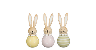Decoratie konijn geel groen roze 3 assorti - h17xd6cm