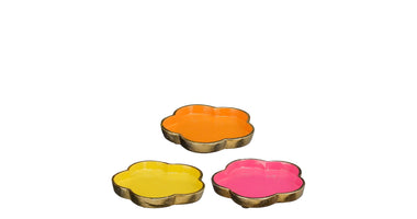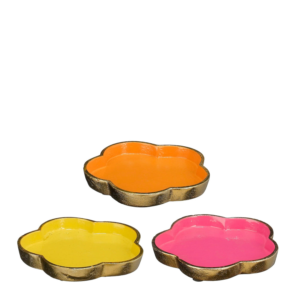 Dekoschale Blume rosa orange gelb 3er Set - H1,5 x D11 cm - Aluminium