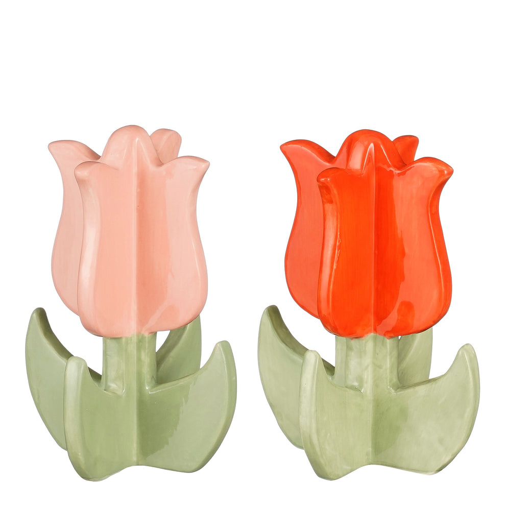 Dekoration Tulpe rosa rot 2er Set - H13,5 x D10cm
