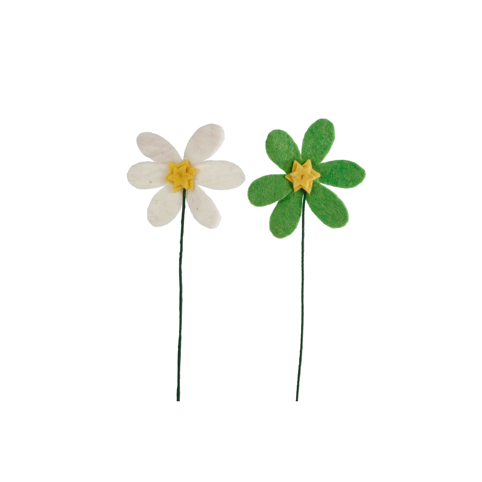 Dekorationsblume "Flower" creme/grün, 2er-Set, Filz, 11x11x33cm