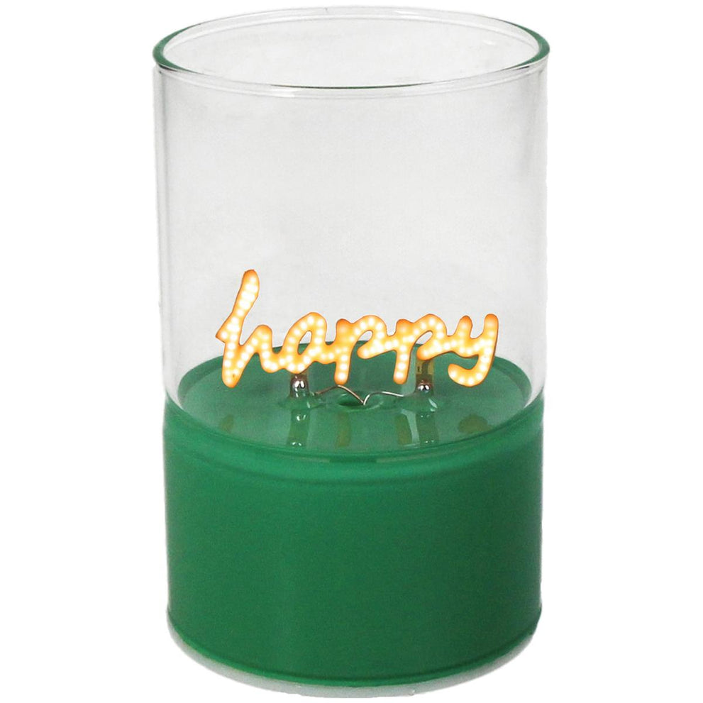 Dekorationsleuchte Happy LED Glas Grün 6,5x6,5x10cm