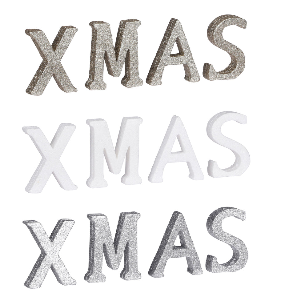 Dekoration Buchstaben XMAS weiß silber gold sortiert - l32xb10xh2cm - Schaumstoff