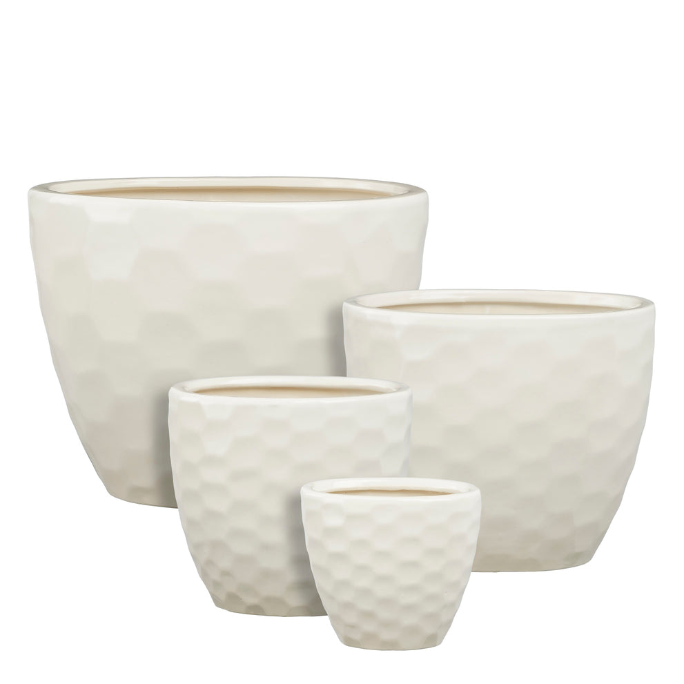 Diamanttopf oval weiß, 4er-Set - L37 x B26 x H29,5 cm