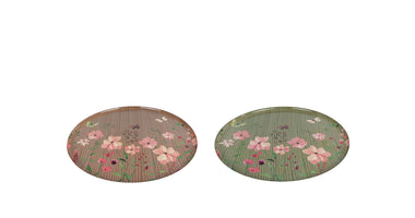 Tablett "Floral" rund grün/rosa 2-fach sortiert Metall 34x34x1,5cm