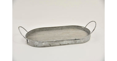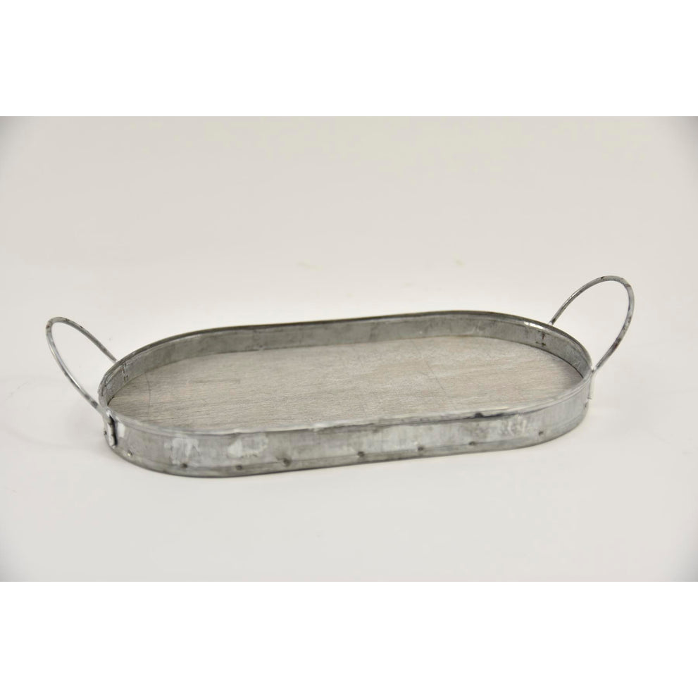 Tablett Rechteck Zink/Holz mit Ohren 23x13x2/5,5cm grau-wash