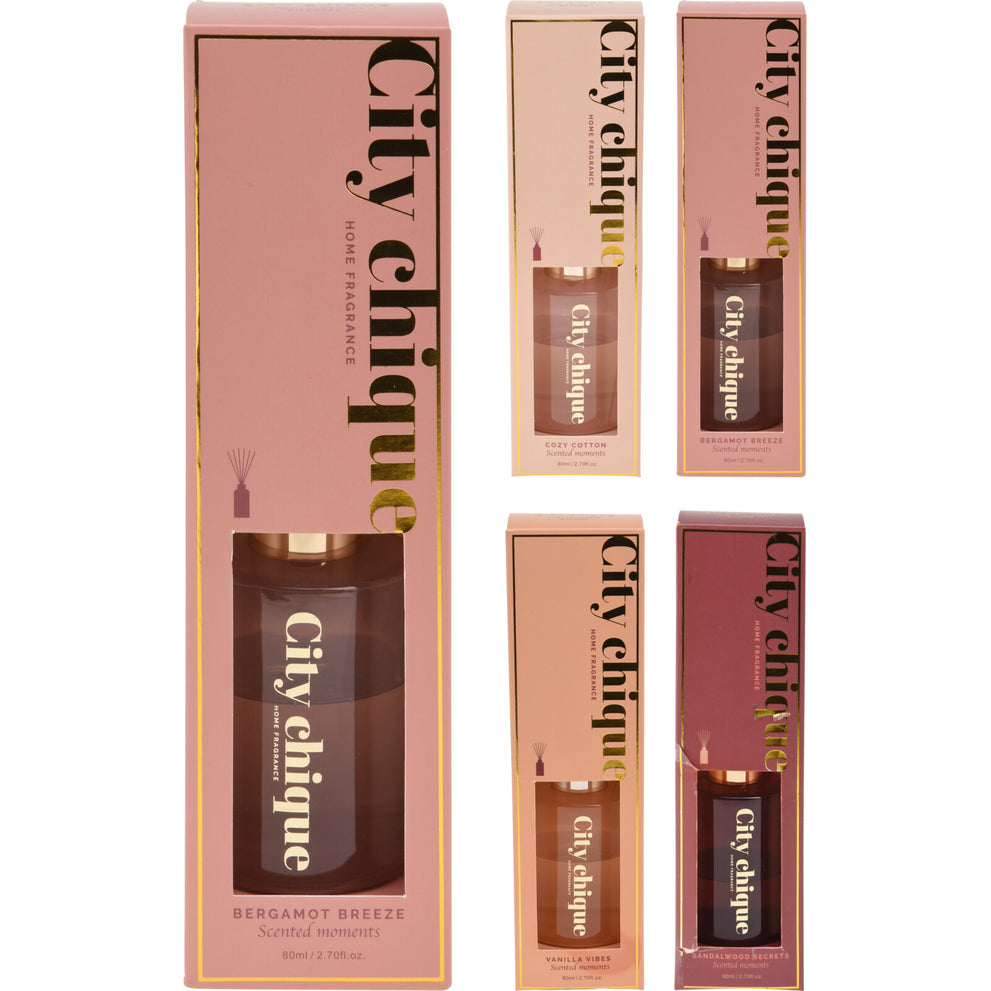 DIFFUSOR 80ML CITY CHIQUE D6 H24CM 4 SORTIERTE FARBEN/DÜFTE