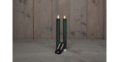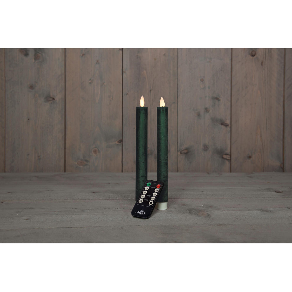DINNERKERZE BO 2 STÜCK ANTIKGRÜN RUSTIKAL WACHS 23CM BEWEGLICHE FLAMME MIT FERNBEDIENUNG 2X2AAA
