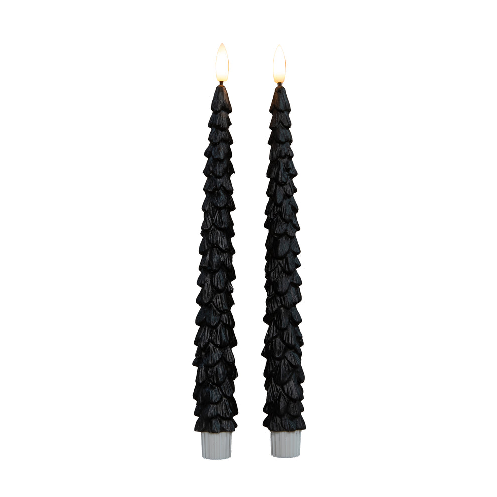 Tischkerze Weihnachtsbaum Wachs 3D Flamme mit 2x2AAA Batterien und Fernbedienung, 27cm, schwarz, 2 Stück