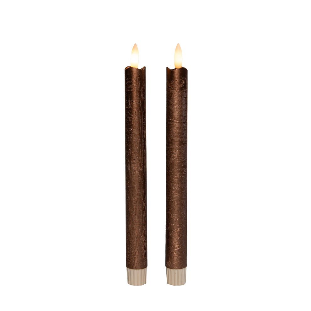 DINNERKERZE RUSTIKAL WACHS 3D FLAMME MIT 2X2AAA BATTERIEN UND FERNBEDIENUNG 23CM BRONZE 2 STÜCK