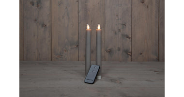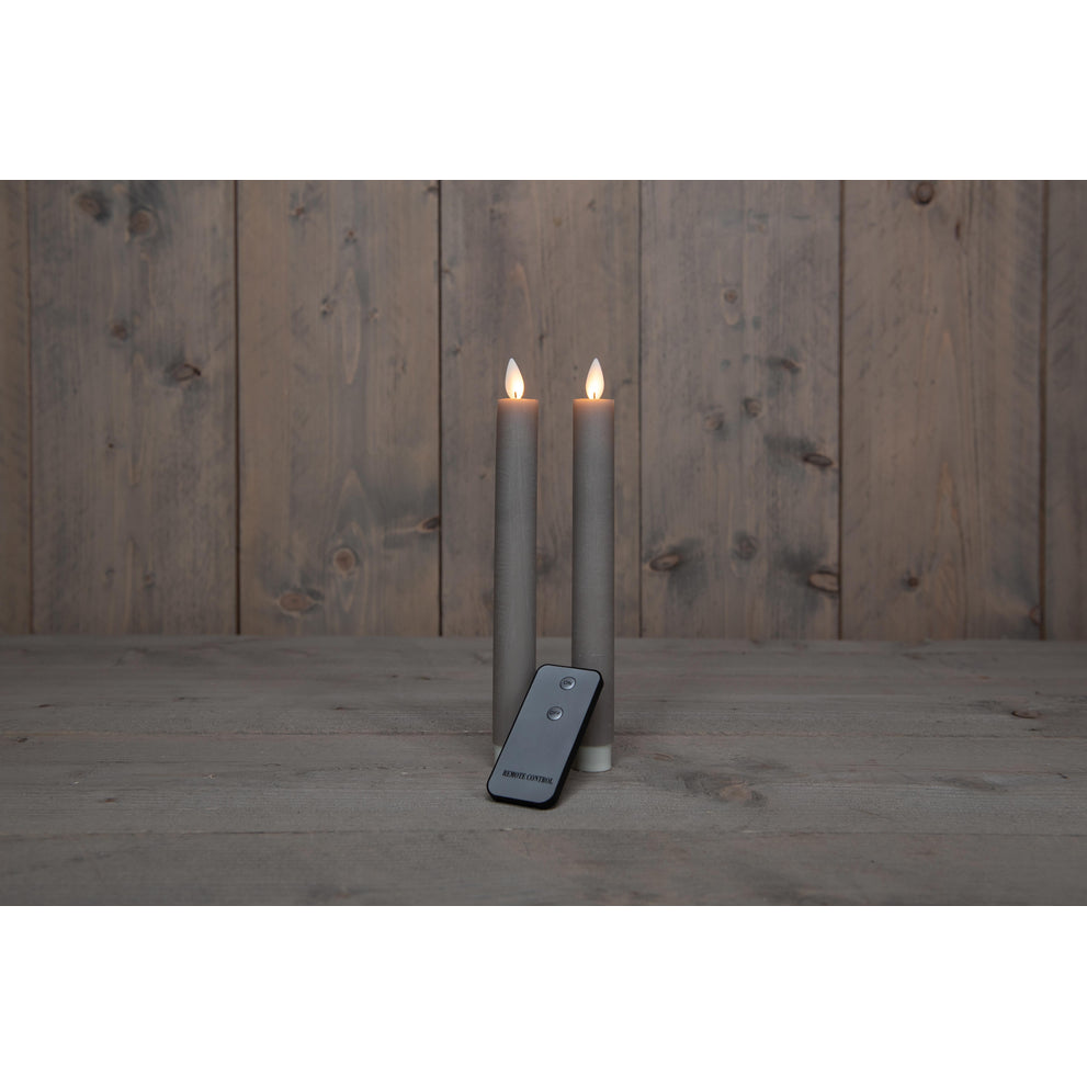 TISCHKERZE B.O. 2PCS TAUPE RUSTIKALES WACHS 23CM BEWEGLICHE FLAMME MIT FERNBEDIENUNG 2X2AA