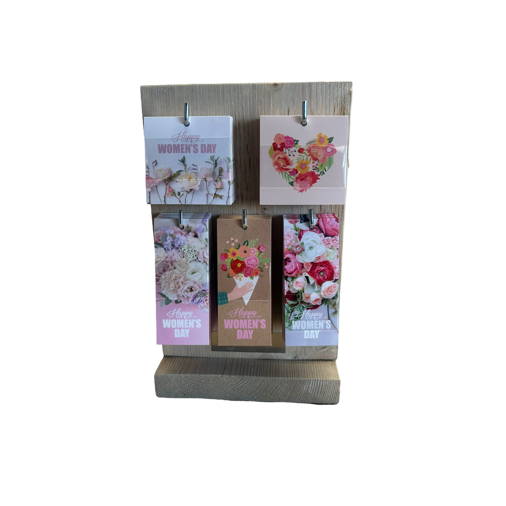 Display met 60 kadokaartjes in 5 motieven ''Vrouwendag''