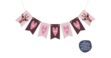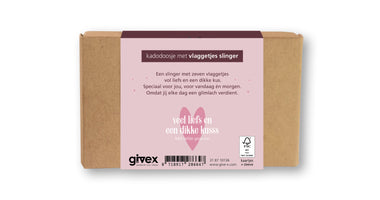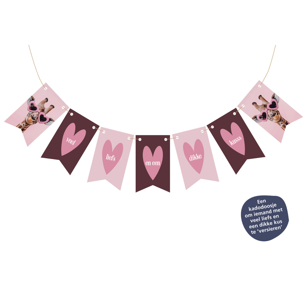 Doosje vlaggetjes slinger ''Veel liefs en een dikke kusss''