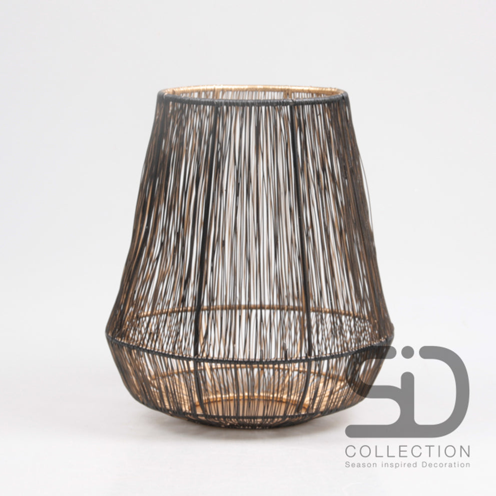 DRAHTLATERNE SCHWARZ/GOLD 22X22X25 CM