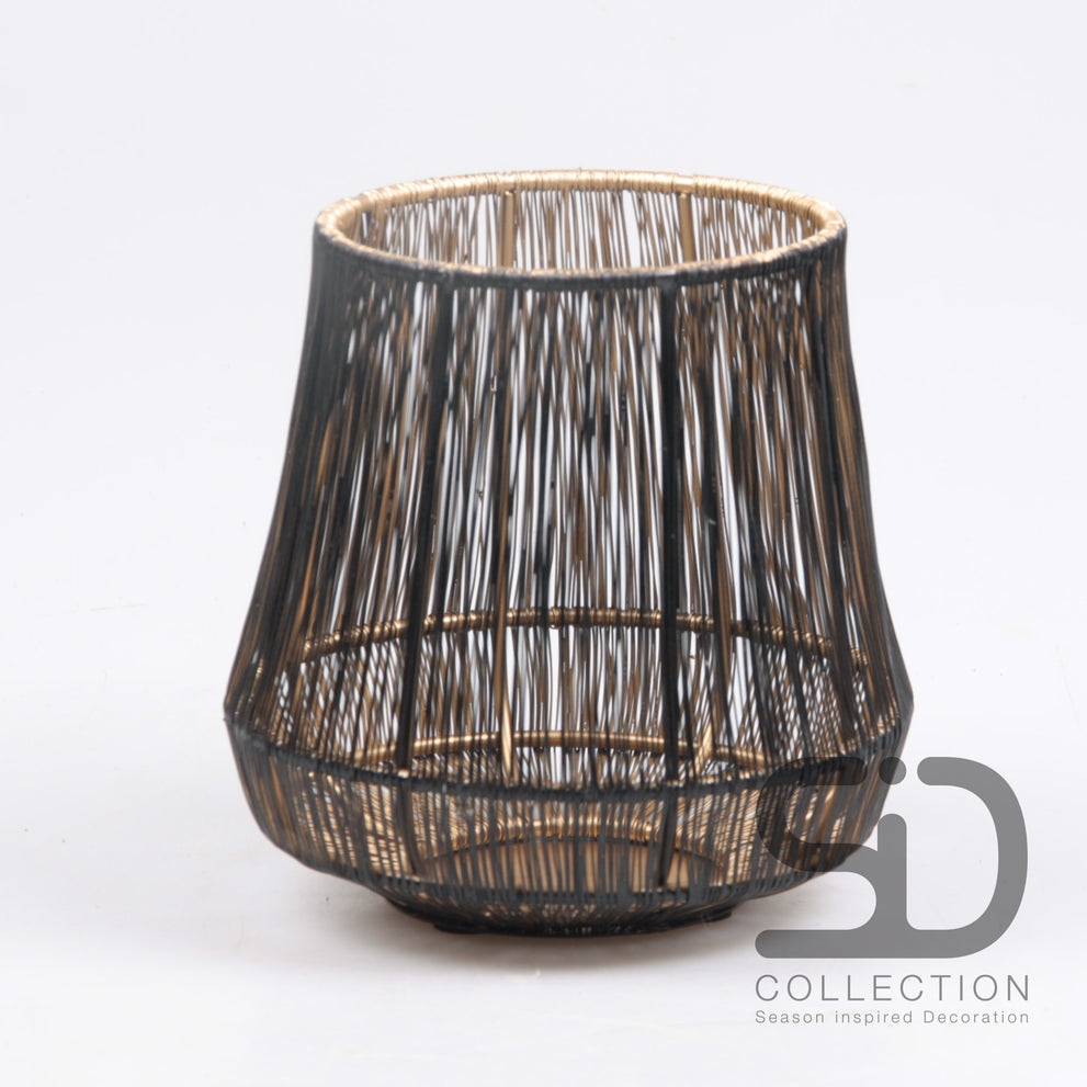 DRAHTLATERNE M SCHWARZ/GOLD 15X15X15 CM
