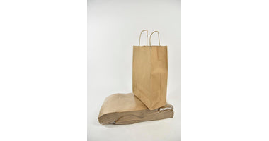 Braune Krafttasche 22 + 10x31 cm zu 50 Stück gedrehtes Handgriff