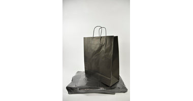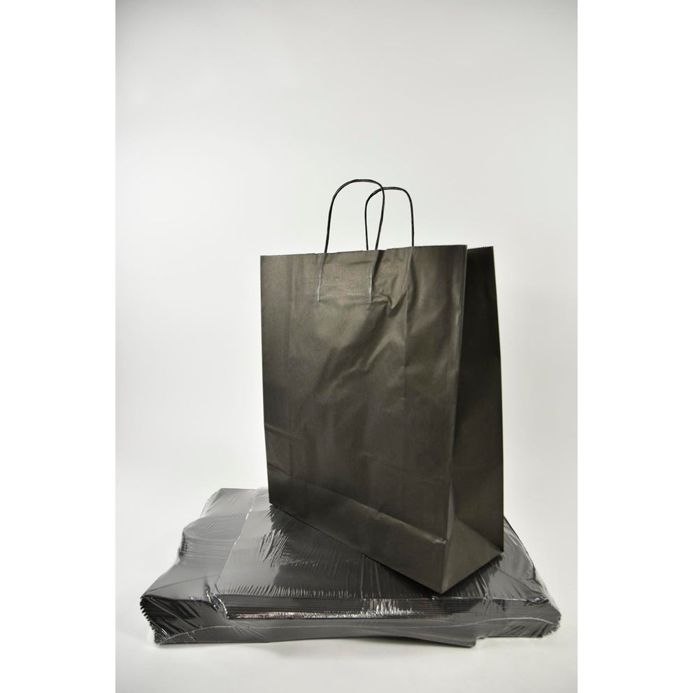 Tragetasche aus schwarzem Kraftpapier 35+14x40cm zu 50 Stück gedreht Hand.