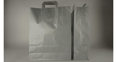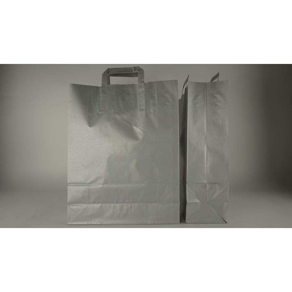 Silberne Krafttasche 35+14x40cm zu 50 Stück gedrehtes Handgelenk.