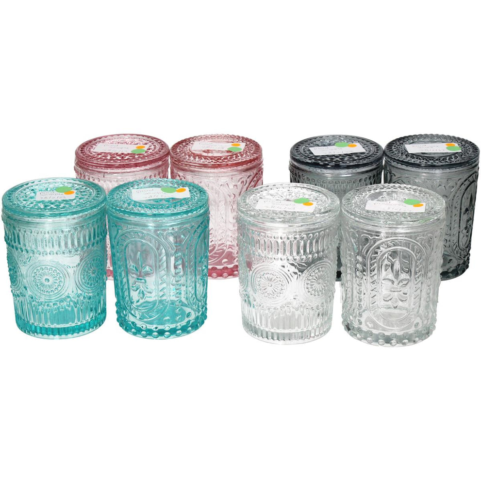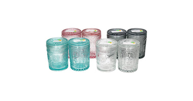 Trinkglas/Bonboniere mit Deckel D8 H10cm 4 Farben 2 Designs