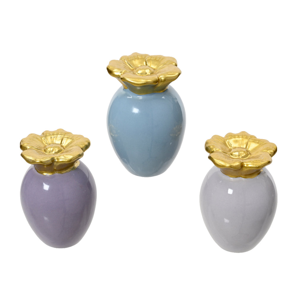 Porzellan-Vase für eine Blume, Lilamix, 3 Farben sortiert, D8,5 H12cm