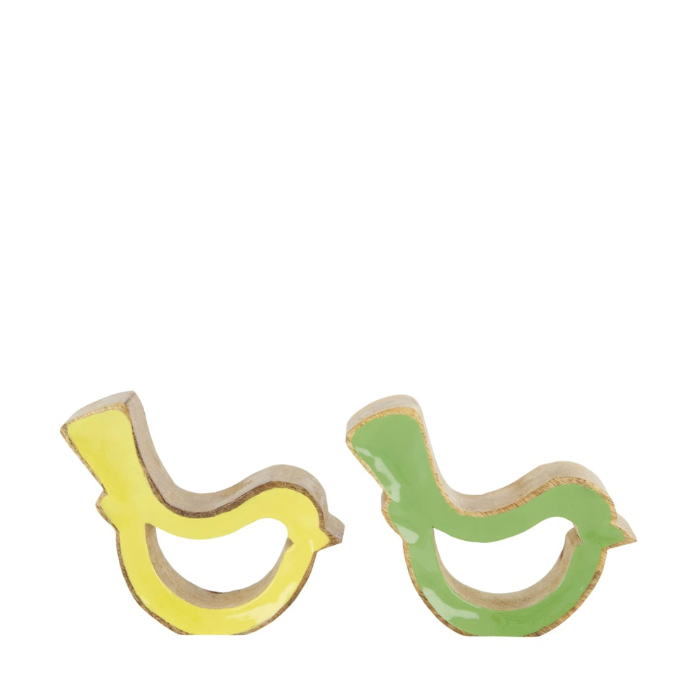 Figur Vogel Mangoholz 18x3,5x14cm Grün/Gelb gemischt