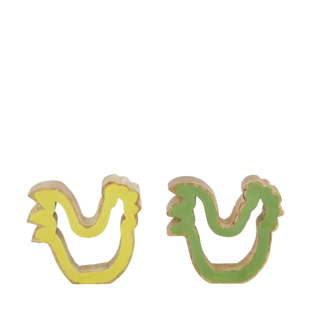 Figur Huhn Mangoholz 9x2,5x10cm Grün/Gelb gemischt