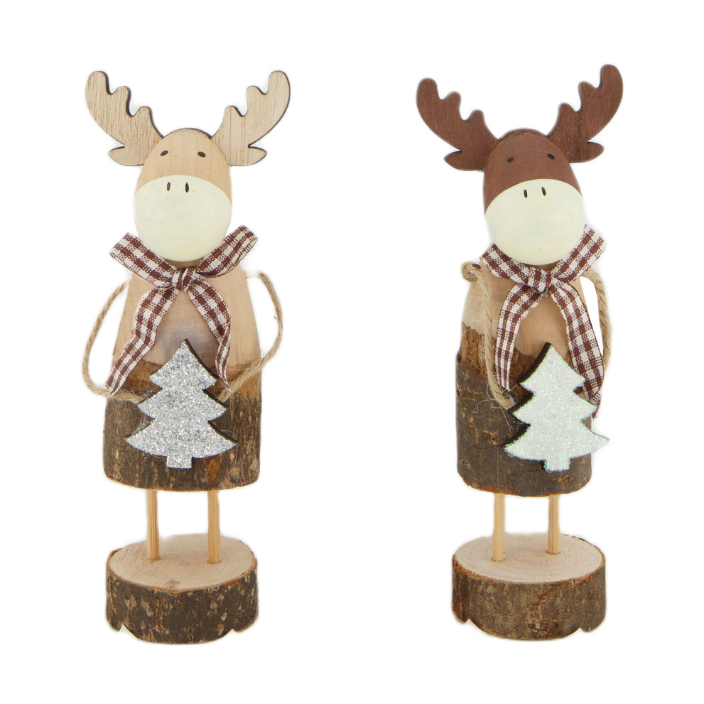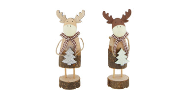 Figurine deer wood 5x4x14cm Mixed Brown/Natural