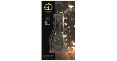 FLASCHENVERSCHLUSS SCHWARZ 10LED 1MTR SCHWARZES KABEL WARM WEISS