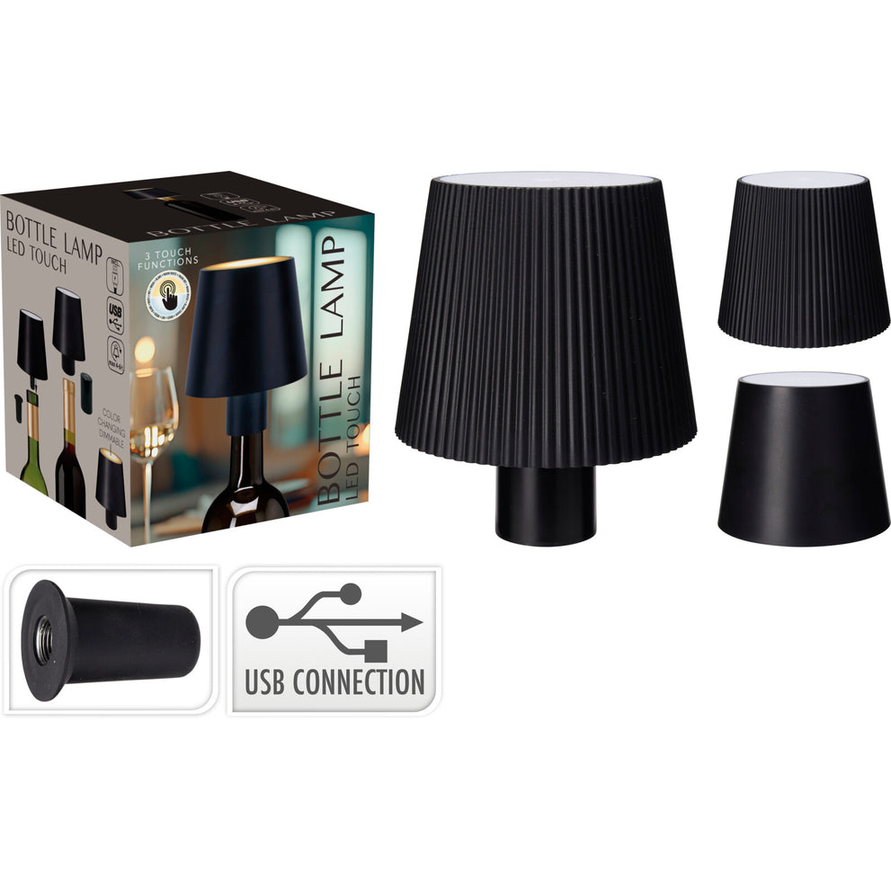 FLESSEN LAMP 10X8CM ZWART 2 ASSORTIE USB OPLAADBAAR/ DIMBAAR