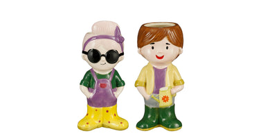 Lustiger Topf lila gelb 2er Set - L10xB8,5xH21cm