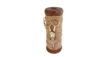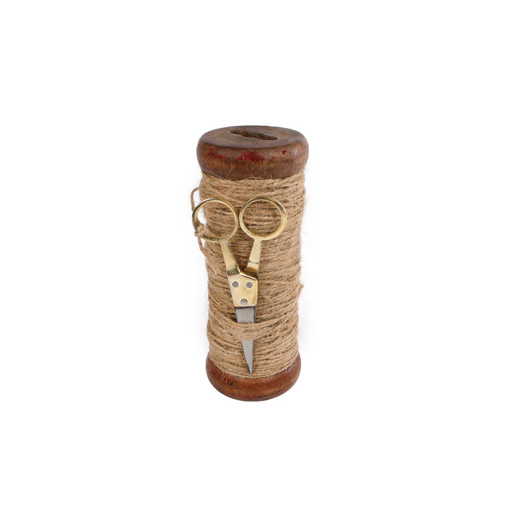 Garn mit Schere L farblich sortiert/gemischt Holz/Stoff 6x6x16cm