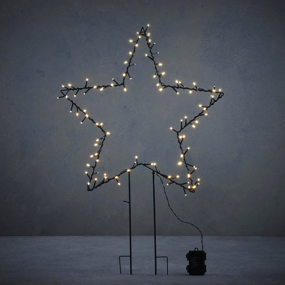 Gartenstab Stern d.grün warmweiß 100led mit Batteriebox und Zeitschaltuhr - h79xd55cm