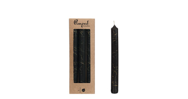 Verzierte Marmorkerzen Ø2,2 H.20 cm schwarz 3er-Set