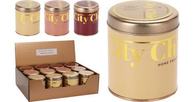 Duftkerze im Blech ''City Chic'' D7 H8cm 3 verschiedene Designs
