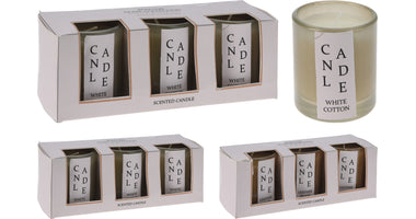 GEURKAARS IN GLAS 5CM SET VAN 3STS, 2 ASS KLEUR PEACHY PINES