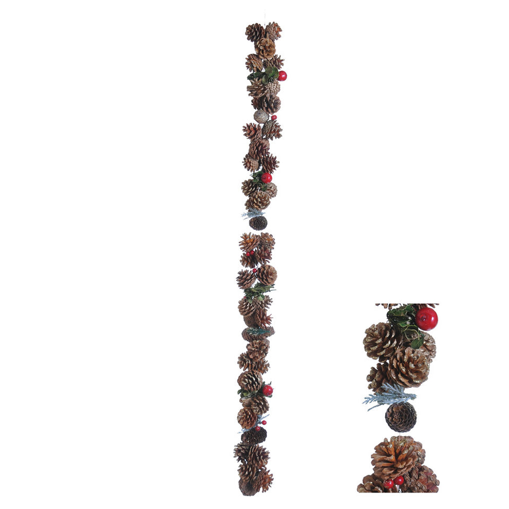 Girlande Tannenzapfen Roter Stern D8 H120cm Natur/Rot