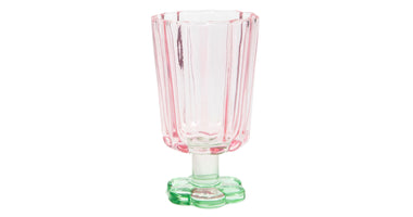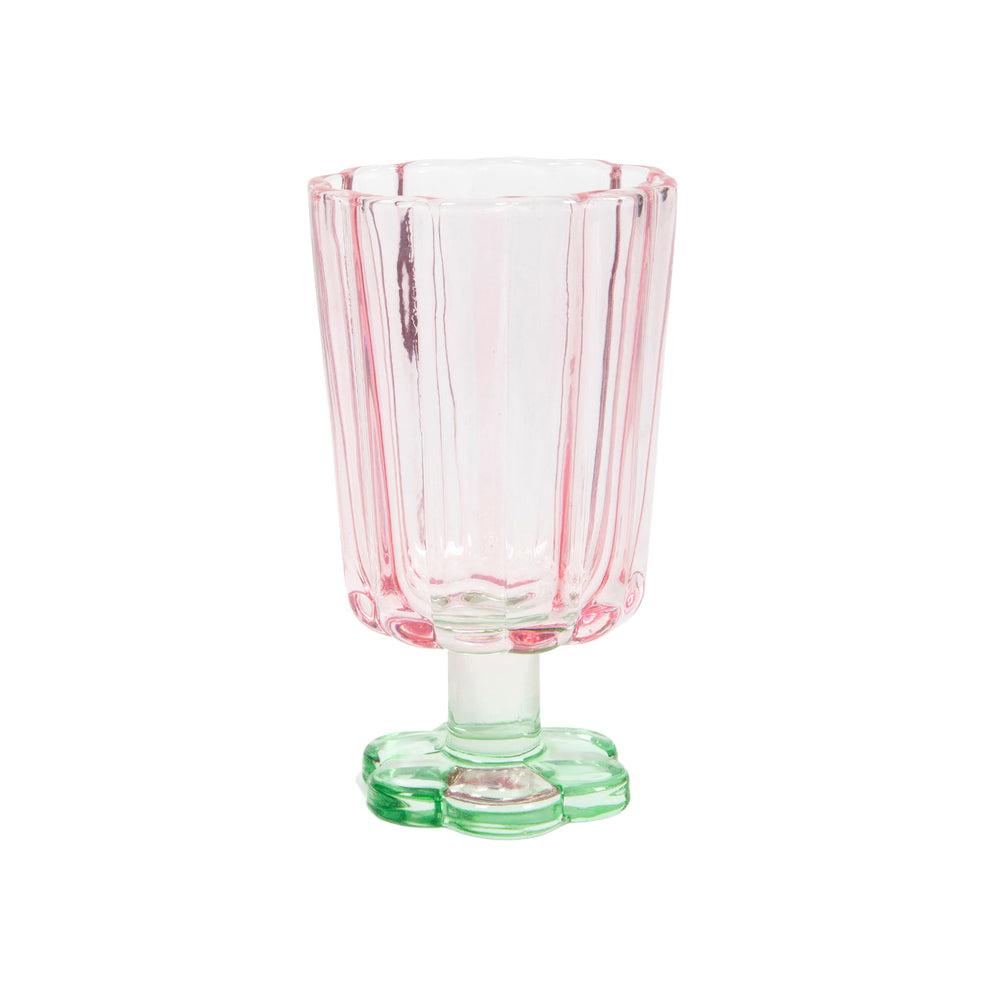 Glas bloemvorm roze/groen d7,9x13,4cm